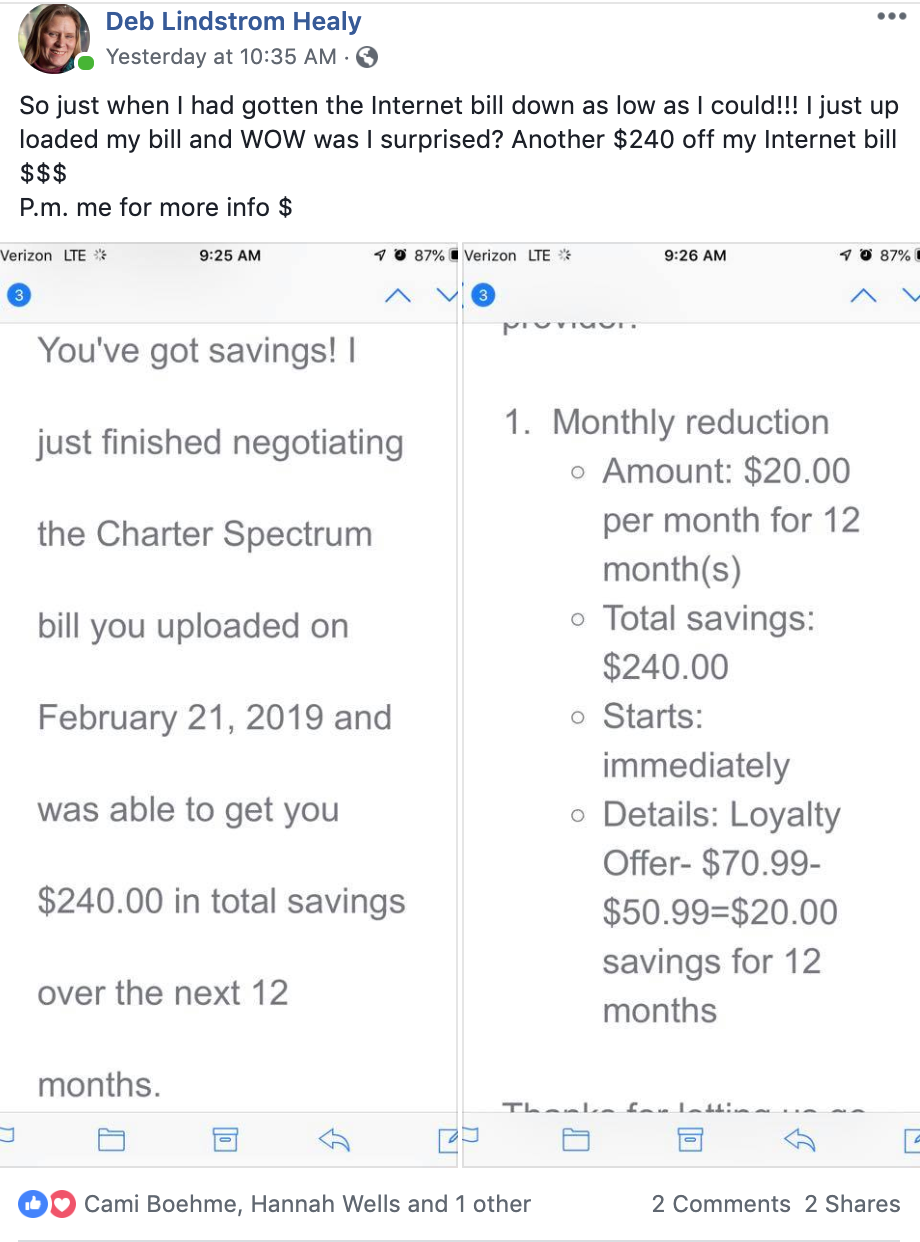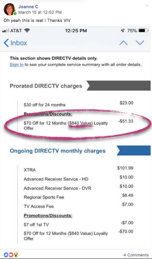 I saved a total of $1,226 on our Comcast, Verizon and SiriusXM bills for 1-2 years!